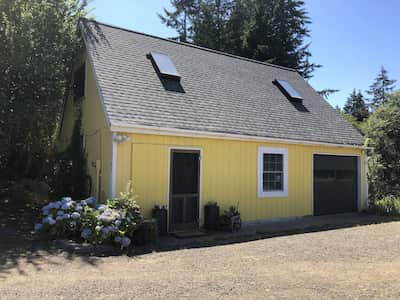 Enjoy peace and quiet at the Cottage at Useful Bear Farm. Vashon Island has lots to offer year-round: beaches, hiking, biking and bird-watching. Conveniently located near the north-end ferry and close to town where there are wonderful shops and restaurants. The cottage has full kitchen, bathroom and living/dining room on the first floor. Upstairs is a large sleeping loft with queen bed separated by a divider and a trundle bed and sleeper sofa. A portion of the proceeds from the cottage go to local housing programs.