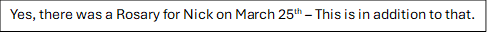 I just received a message from Anna Winter, Nick's Widow.